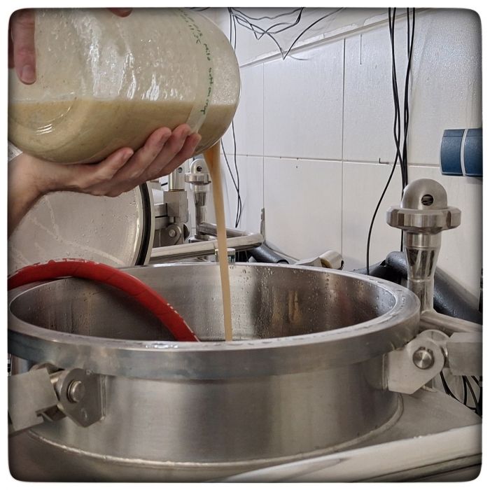 It's a great moment to add the yeast. That means everything worked well and we did a great job.