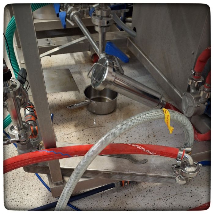 'Til now I had the great pleasure to brew at two so called nano breweries. No more than about 100 liters per brewing. I did about three beers in a 20 liter vessel at home. That was my experience. Today I entered the next level...