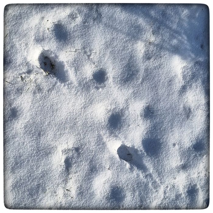 Wenn man als einer der wenigen sich auch von Eis und Schnee nicht vom Garten fern halten lässt, dann sieht man - upsi - da war schon jemand vorher da. Hier der Hase, dort der Marder und da hinten der Waschbär. Nein, im Ernst, ich habe keine Ahnung, welches Tier welche Spur hinterlässt.